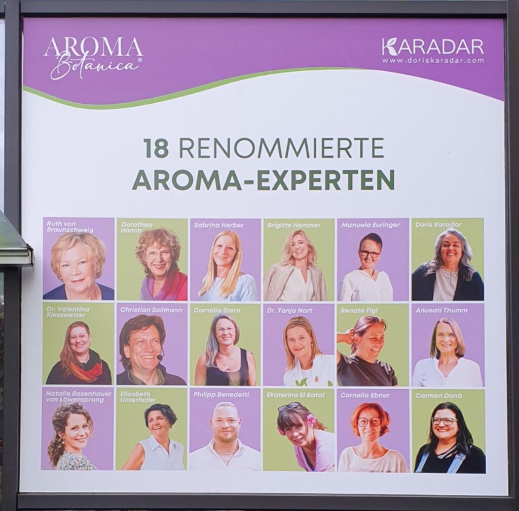Nachdem Doris Karadar 2019 den Aromabotanica Kongress ins Leben rief, ist dieser ein gutes Beispiel für visionäre Zusammenarbeit. Er bringt die Crème de la Crème der Fachleute und Experten aus den Bereichen der klinischen Aromatherapie, Aromapflege und Phytotherapie zusammen, um ihr unschätzbares Wissen und ihre tiefgreifenden Erfahrungen einem breiten Fach-Publikum zugänglich zu machen.